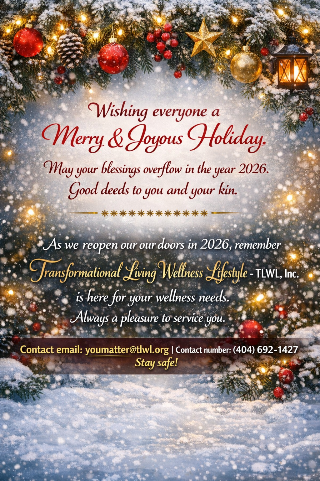 DetailsHappy Turkey Day! As we gather with loved ones and reflect on the blessings of this season, may today remind us of the power of gratitude, compassion, and community. At TLWL, Inc., we are deeply thankful for those who support our mission, stand with us in service, and help us bring hope to those…