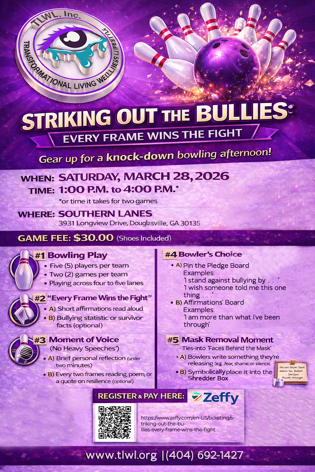 DetailsTransformational Living Wellness Lifestyle—TLWL, Inc. is honored to announce our upcoming Saturday, October 24, 2026, annual fundraiser titled, “The Faces Behind the Mask: Bullying Masquerade Gala.” This meaningful event is currently in the planning stages and will bring together community leaders, advocates, educators, and supporters to shed light on the hidden pain caused by bullying.…